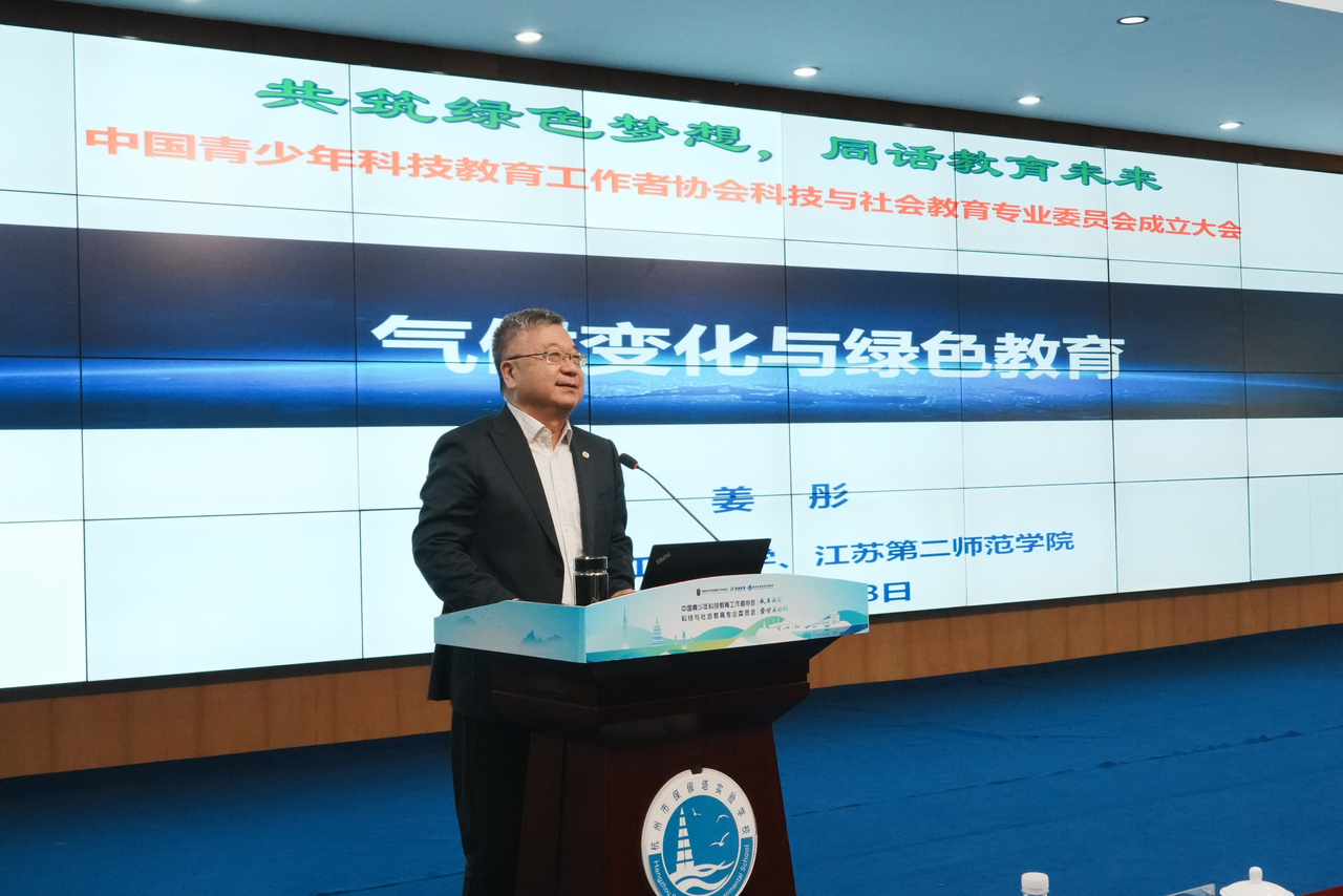 南京信息工程大学气候与环境治理研究院院长姜彤作气候变化与绿色教育报告,指出气候变化是全球挑战,绿色教育是衔接科技教育与可持续发展的关键。他提出要将低碳、生态保护理念融入中小学教育,通过跨学科实践培养学生生态素养与责任意识,树立和谐共生理念。