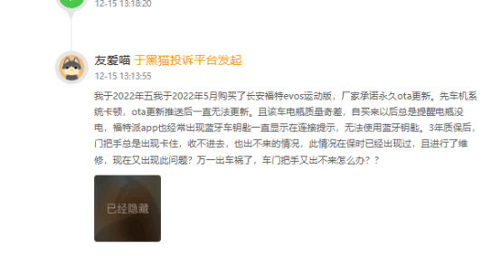车友公社在车质网看到有车主直言:“车机黑屏换过一次主机还是不理想,中控屏幕频繁全黑,手机APP还总提示车机进入深度睡眠模式,接近40万的车连基础稳定性都保证不了。”