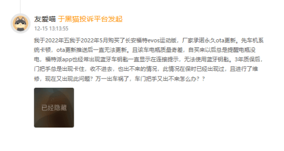 车友公社调查发现,长安福特EVOS车型也存在类似情况——多位车主反馈“车机卡顿、地图老旧、OTA升级无进展”等问题,与锐界L、蒙迪欧、探险者的问题高度重合,反映出长安福特车机系统存在“批次性、共性缺陷”。